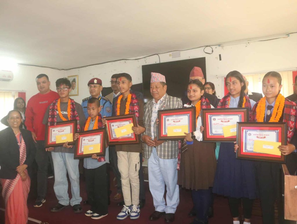 कार्यक्रममा ‘बालविवाह अन्त्यका लागि बालबालिकाको भूमिका’ विषयक प्रदेश स्तरिय निवन्ध प्रतियोगितामा प्रथम हुने सगरमाथा जनता मावि ओखलढुङ्गाकी रोशनी राई, दोश्रो हुने मनकामना मावि, ओखलढुङ्गाकी शिक्षा अधिकारी र तेश्रो हुने बुढानिलकण्ठ स्कुल विराटनगरकी सरश अधिकारीलाई नगद सहित पुरस्कृत गरिएको थियो ।