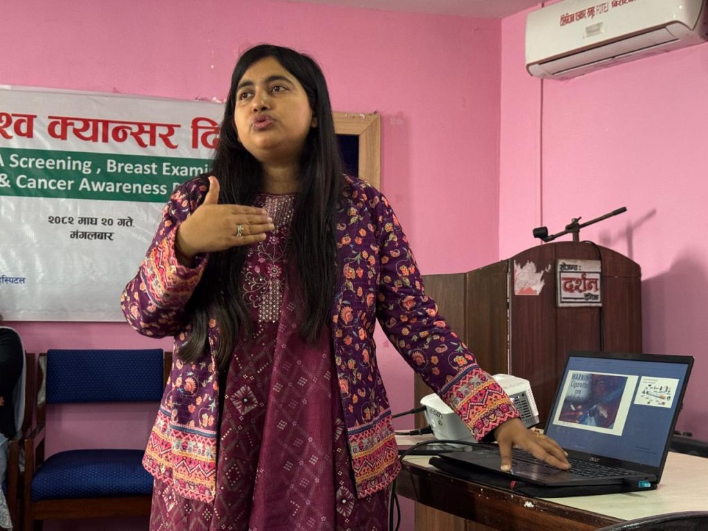 स्वास्थ्य शिविरसँगै क्यान्सर सचेतना कार्यक्रम पनि सम्पन्न भएको छ । कार्यक्रमको सहजीकरण बरिष्ठ क्यान्सर रोग विशेषज्ञ डा. अस्मिता रायमाझीले गर्नुभएको थियो । उहाँले महिलामा पाठेघर भन्दा स्तन क्यान्सरका विरामीको संख्या बढ्दो रहेको बताउनुभयो ।