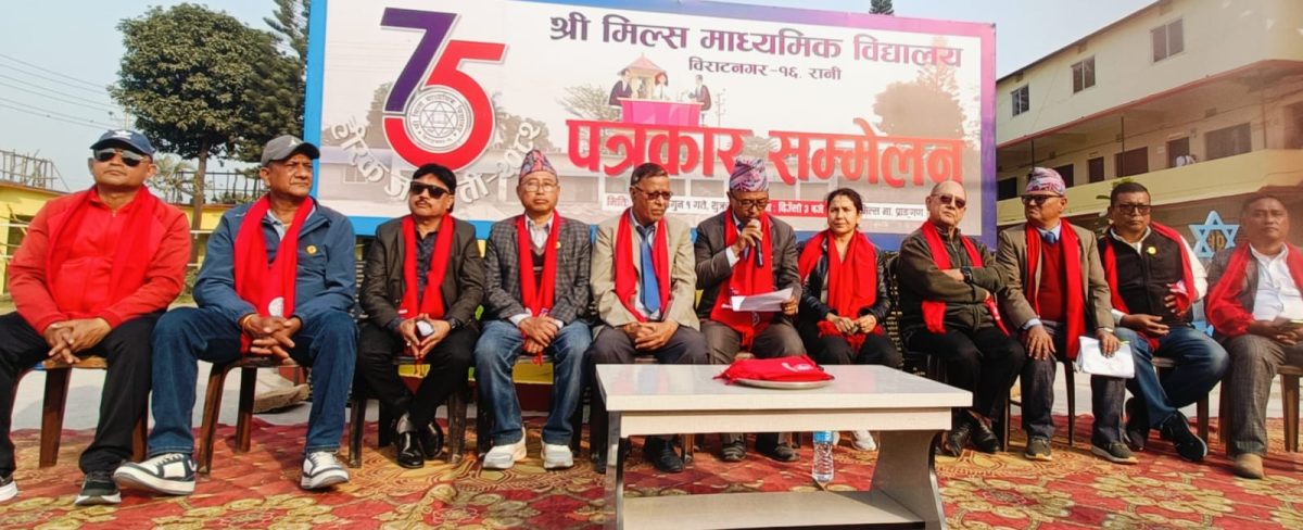 विराटनगर १ फागुन । विराटनगरको मिल्स माध्यमिक विद्यालयले विद्यालय स्थापनाको ७५ औं बार्षिकोत्सव मनाउने भएको छ । फागुन २...