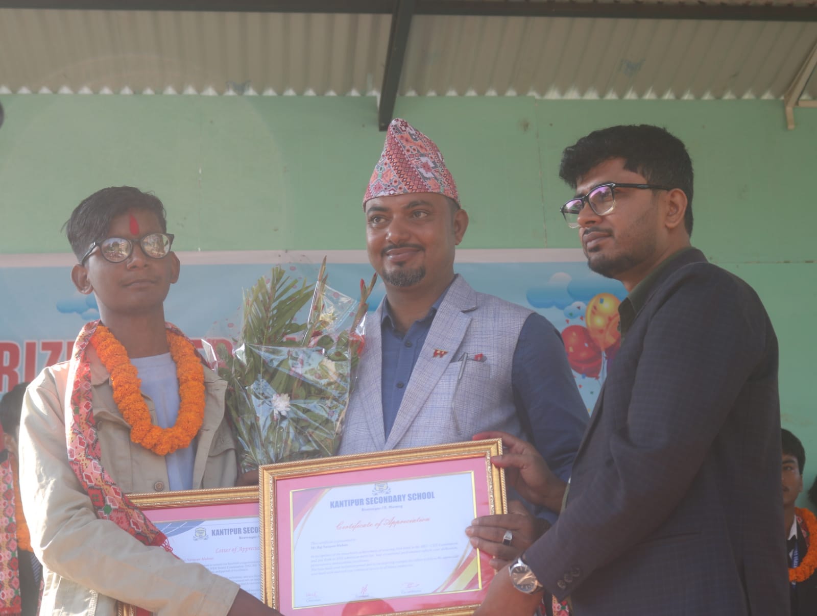 एमबीबीएसमा पूर्णछात्रबृत्ति पाएका कान्तिपुर कलेजका महतो एक लाख सहित सम्मानित