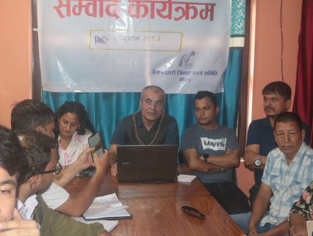 प्रेस चौतारी नेपाल, जिल्ला कार्यसमिति मोरङले आयोजना गरेको संवाद कार्यक्रममा बोल्दै सभापति पोखरेलले समितिले सार्वजनिक सरोकारका महत्वपूर्ण विषयमा निर्णय गरेर कार्यान्वयनमा ल्याएको जानकारी गराए ।