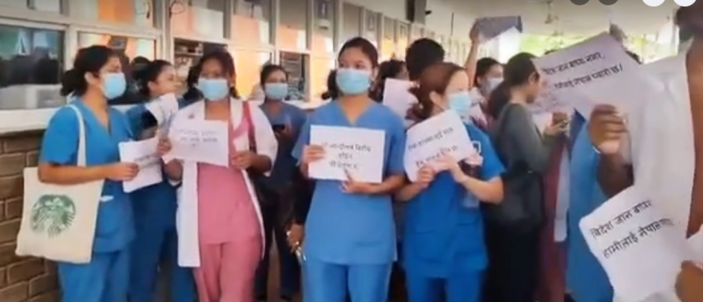 विराटनगर १ कात्तिक । मोरङको बुढीगंगास्थित टंकीसिनवारीमा रहेको विराट मेडिकल कलेज टिचिङ अस्पतालका नर्स र स्वास्थ्यकर्मीहरु आन्दोलित भएका छन् ।