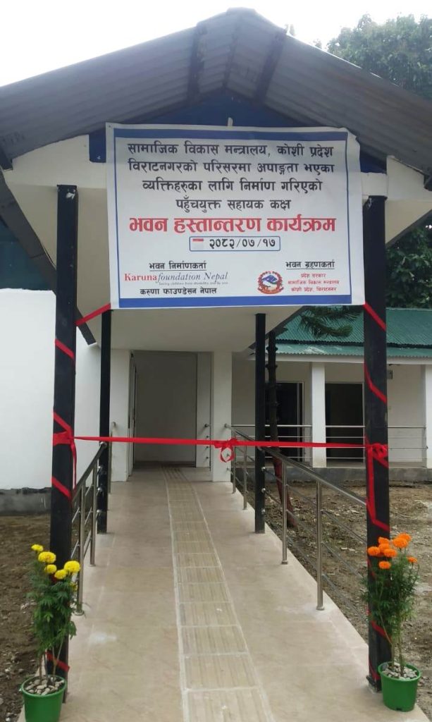 अपाङ्गता पुर्नस्थापनाको क्षेत्रमा कार्यरत संस्था करणा फाउन्डेसनले अपाङ्गता भएका व्यक्तिहरुका लागि निर्माण गरिएको पहुँचयुक्त सहायता कक्ष सामाजिक विकास मन्त्रालयलाई आज हस्तान्तरण गर्ने भएको हो ।