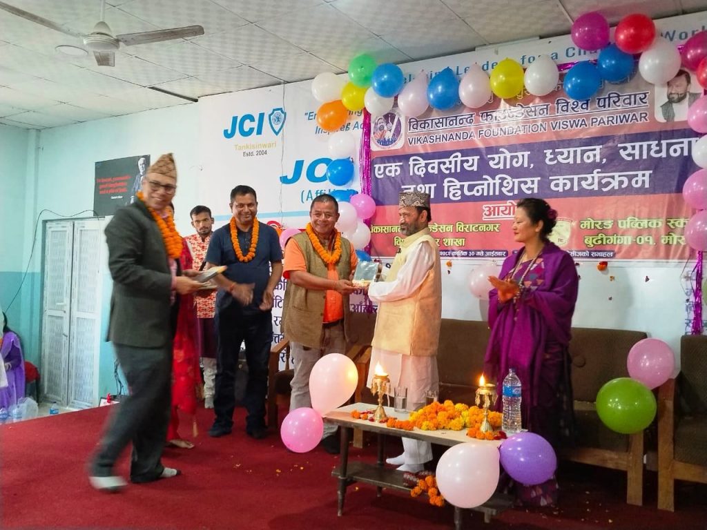 टंकीसिनवारी जेसिस सभाहलमा भएको कार्यक्रममा डा.योगी विकाशानन्दले ध्यान, ज्ञान र साधनाका विषयमा जानकारी गराएका थिए । मोरङ पब्लिक स्कुल र बिकाशानन्द फाउण्डेसनको सम्युक्त आयोजनामा भएको कार्यक्रममा २ सय भन्दा बढी मानिसहरुले योग ध्यान र साधना गरेका थिए ।