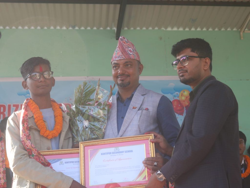 एमबीबीएसमा पूर्णछात्रबृत्ति पाएका कान्तिपुर कलेजका महतो एक लाख सहित सम्मानित