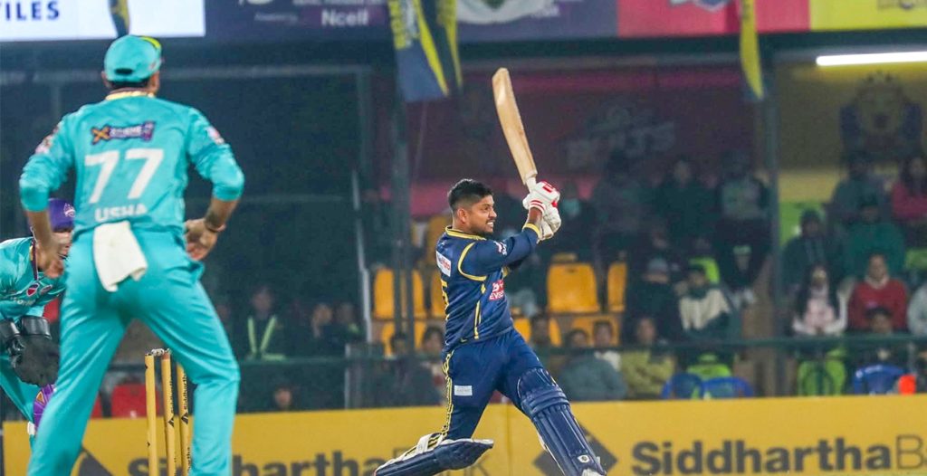 टिमको स्कोर २१ हुँदा ओपनर लोकेश बम व्यक्तिगत १४ रनमा आउट भएपछि मुन्से र गप्टिलले ५३ रनको साझेदारी गरेका थिए । बसिर अहमदले १९ रन जोडे । सन्दीपले अविजित ९ रन जोडे ।