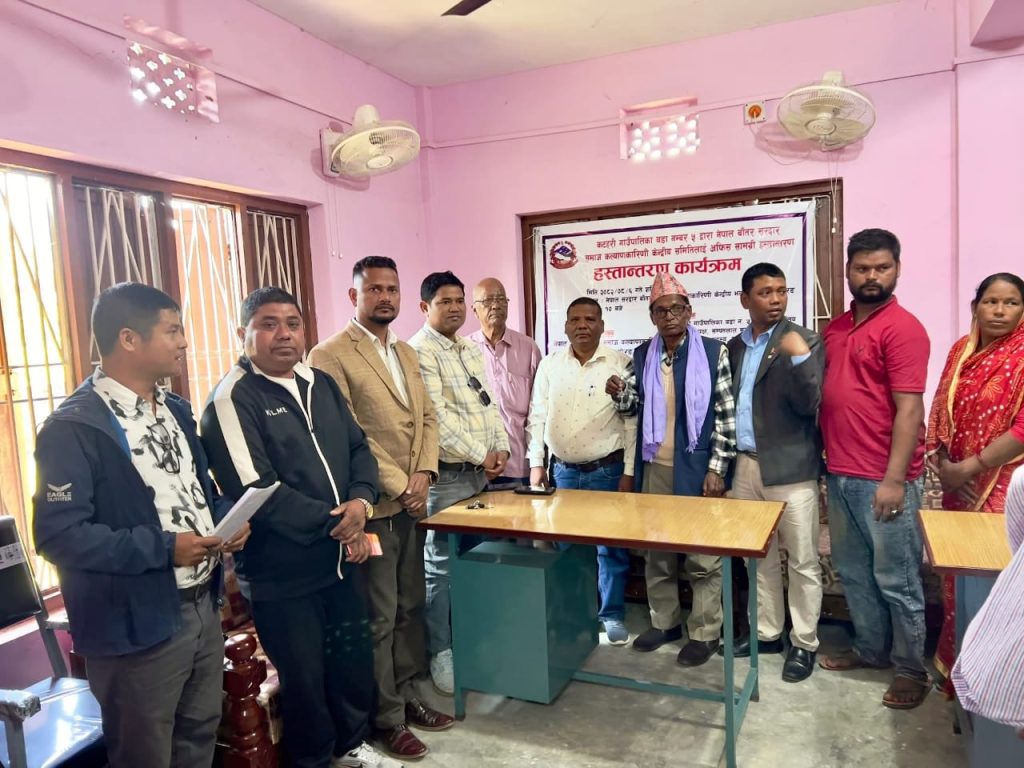 कटहरीमा आयोजित कार्यक्रमका बीच वडाअध्यक्ष सम्पतलाल सरदारले आज नेपाल बाँतर सरदार समाज कल्याणकारिणी केन्द्रीय समितिलाई फर्निचरका सामग्री र प्लाष्टिक कुर्सी हस्तान्तरण गर्नुभएको हो ।