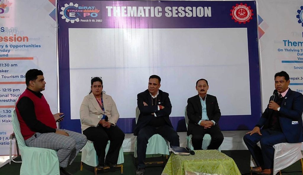 विराटनगर १३ पुस । विराटननगरमा जारी विराट ट्रेड एक्स्पोमा आइतबार पर्यटन उद्योग, अवसर र सम्भावनाबारे विस्तृत छलफल भएको छ । फस्टाउँदै गएको पर्यटन क्षेत्रलाई कसरी दिगो र प्रभावकारी बनाउने भन्ने विषयमा सरोकारवालाबीच विमर्श भएको हो ।