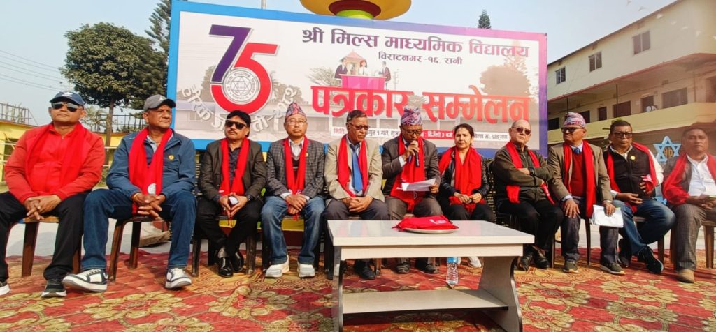 विराटनगर १ फागुन । विराटनगरको मिल्स माध्यमिक विद्यालयले विद्यालय स्थापनाको ७५ औं बार्षिकोत्सव मनाउने भएको छ । फागुन २ देखि ८ गते सम्म विराटनगर १६ मिल्स एरियामा रहेको सो विद्यालयले हीरक जयन्ती मनाउने भएको हो ।
