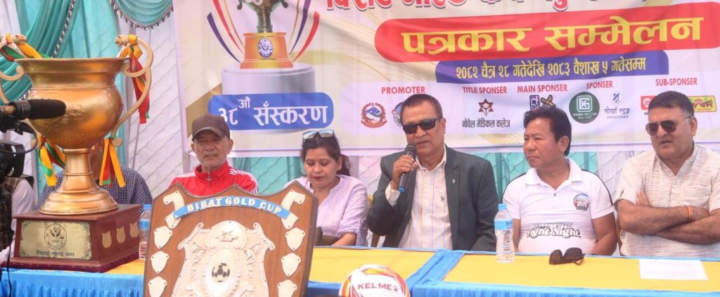 स्थानीय शहीद मैदानमा रात्रीकालिन प्रतियोगिता हुने ट्रष्टका अध्यक्ष किशोरबहादुर शाहीले जानकारी दिनुभयो । प्रतियोेगितामा नेपाल र भारतका गरी आठ वटा टीमहरुको सहभागिता हुने छ । ‘फुटवलको पर्व, विराटनगरको गर्व, विराट गोल्ड कप’ नाराका साथ प्रतियोगितामा नेपाल पुलिस क्लव , त्रिभुवन आर्मी फुटवल क्लव , मच्छिन्द्र फुटवल क्लव , नेपाल एपिएफ फुटवल क्लव, चर्च ब्वाइज फुटवल क्लव,सम्राट स्र्पाेटिङ्ग क्लव विराटनगर, झापा –११ फुटवल क्लव, झाफा, र भारत झारखण्डको विर्षा मुण्डा फुटबल एकेडेमी रहेका छन् ।