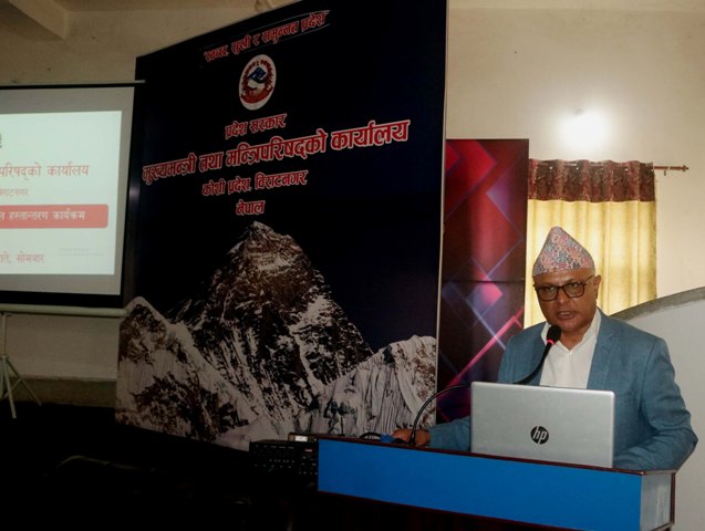 विराटनगर, २३ जेठ । कोशी प्रदेशका मुख्यमन्त्री हिक्मतकुमार कार्कीले सङ्घीय संरचनाको कार्यान्वयनमा प्रादेशिक पिआईएस पार्टल महत्वपूर्ण कार्य भएको बताउनु भएको छ । मुख्यमन्त्री तथा मन्त्रिपरिषदको कार्यालयद्वारा मुख्यमन्त्री कार्यालयमा आज आयोजित कार्यक्रममा राष्ट्रिय कितावखाना ललितपुरद्वारा तयार गरिएको ‘प्रादेशिक पिआईएस पोर्टल हस्तान्तरण कार्यक्रममा उहाँले पोर्टलको निर्माणबाट प्रदेशका र स्थानीय निकायका कर्मचारीहरुको मनोबल उच्च भएको धारणा राख्नु भयो ।