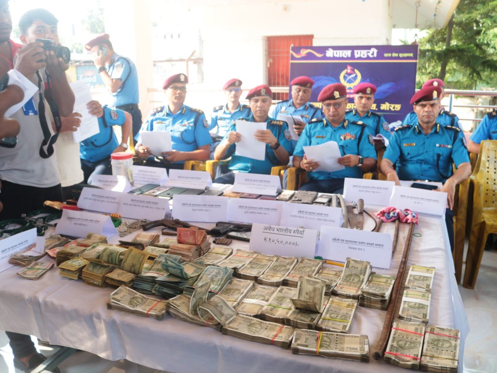 मोरङको वुढीगंगा कोयलपुर क्षेत्रको नहरको सडकमा भदौ २२ गते रातिको ११ बजे शंकास्पद रुपमा हिडिरहेको अवस्थामा पक्राउ गरिएको जिल्ला प्रहरी कार्यालय मोरङका प्रवक्त्ता एवं प्रहरी नायव उपरीक्षक रञ्जनकुमार दाहालले जानकारी दिनु भयो । लुकाइ छिपाइ रहेको सामानहरुमा प्रहरीबाट लुटिएको चाइनिज पेस्तोल एक थान, कटुवा पेस्तोल एक थान, रड तीन थान, धारिलो हतियार चक्कु दुई थान, पेचकस एक थान, रु एक लाख ७५ हजार २७५ र भारतीय रुपैया ११ हजार ६००, सुनजस्तो देखिने गहना तिलहरि एक थान ,झुम्का दुई जोर, चाँदीको जस्तो देखिने तीन लहरे सिक्री एक थान, पाउजु एक जोर , विभिन्न विदेशी रुपैया र नेपाली र भारतीय नम्बरको मोटरसाईकल दुई थान रहेको छन् ।