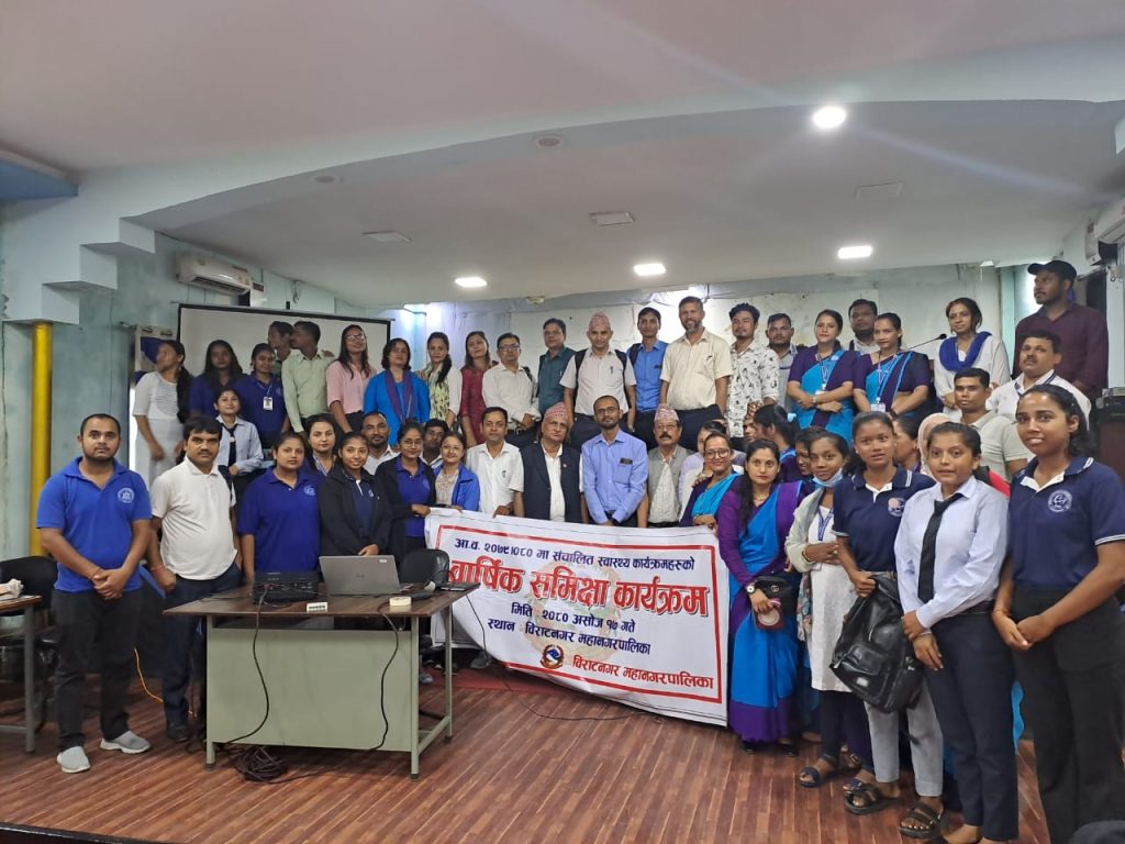 विगतका कमीकमजोरीलाई सच्याउँदै महानगरवासी स्वास्थ्य पहुँच अझै सहज बनाउनुपर्नेमा उहाँको जोड थियो । गत आर्थिक वर्ष स्वास्थ्य क्षेत्रमा सतप्रतिशत बजेट खर्च भएको स्वास्थ्य महाशाखा प्रमुख हैदर अलीले जानकारी दिनुभयो । कार्यक्रममा महानगरका तर्फबाट तथ्यांक अधिकृत दीपक भट्टराई, वैजनाथपुर अस्पतालका तर्फबाट सिनियर अहेव अधिकृत भोला तिम्सिना, विराटनगर आँखा अस्पतालका तर्फबाट कुमार पृथुलगायतले आफ्नो संस्थाले गरेका कार्यको प्रस्तुतीकरण दिनुभएको थियो ।
