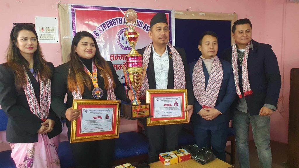 विराटनगर १७ पुस । भारतको हैदराबादमा सम्पन्न १० औ विश्व स्ट्रेन्थलिफ्टिङ एण्ड इन्क्लाइन बेन्च प्रेस च्याम्पियन्सीपमा पदक विजेता दिपा विष्टलाई विराटनगरमा सम्मान गरिएको छ ।