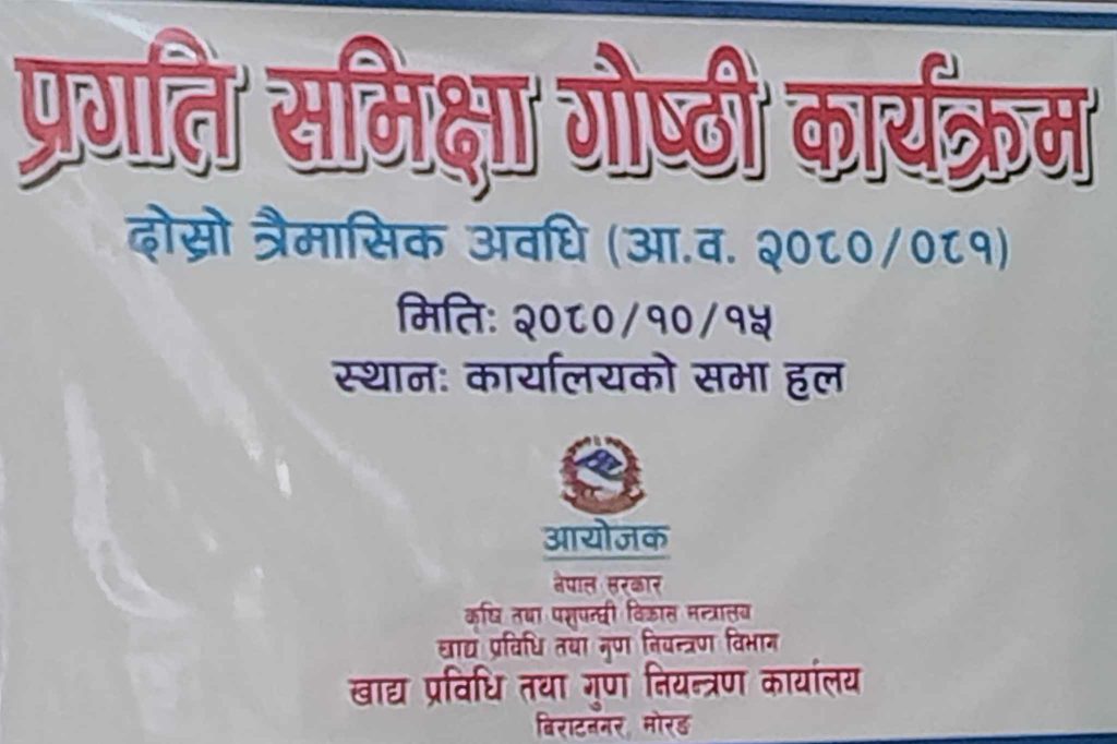 सोमबार विराटनगरमा आयोजित दोश्रो त्रैमासिक समिक्षा गोष्ठीमा सो कार्यालयले गरेका कार्यहरु र प्रगति विवरण र्सार्वजनिक गर्ने विराटनगर दुग्ध वितरण आयोजना सहित १३ वटा निजी उद्योगहरु विरुद्ध मुद्दा दायर गरेको जनाएको छ ।