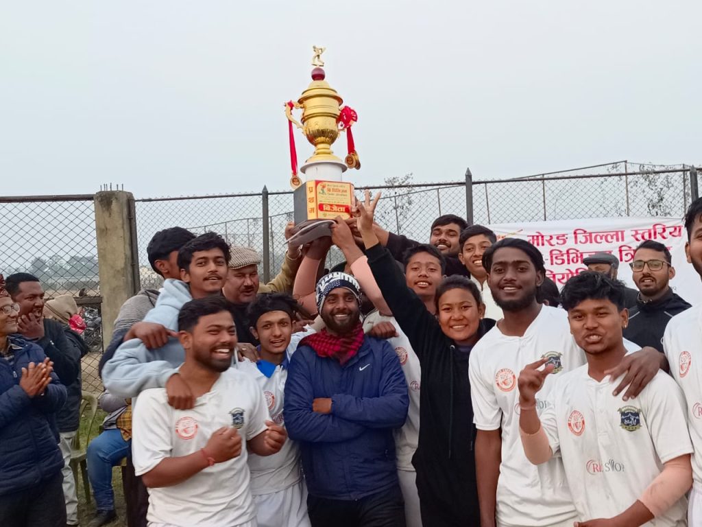 विराटनगर २४ माघ । मोरङ जिल्ला स्तरिय वी डिभिजन क्रिकेट प्रतियोगिता अन्तरगत विराटनगरको वैजनाथपुर क्रिकेट मैदानमा भएको फाइनल खेलमा विजयी हुँदै विराटनगर क्रिकेट क्लब (वीसीसी) च्याम्पियन बनेको छ ।