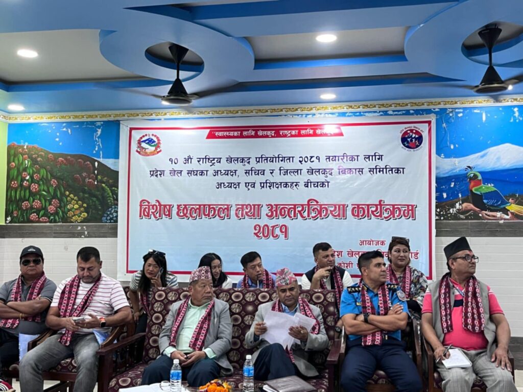 विराटनगर १ भदौ । कर्णाली प्रदेशमा आगामी मंसिर २ देखि शुरु हुने १० औँ राष्ट्रिय खेलकुद प्रतियोगिताका लागि कोशी प्रदेशले तयारी शुरु गरेको छ । प्रदेश खेलकुद विकास बोर्डले शुक्रबार विराटनगरमा बोर्डले १० औँ राष्ट्रिय खेलकुद प्रतियोगिता लक्षित अन्तरक्रिया गरेको छ ।
