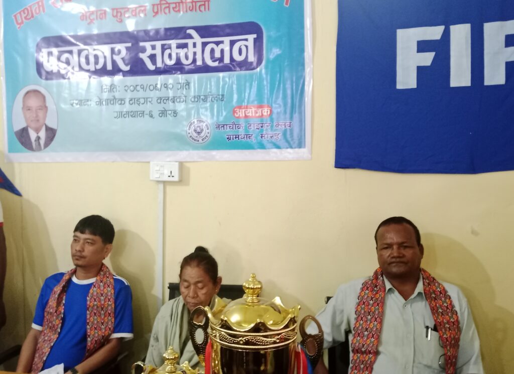 विराटनगर १२ असाेज । माेरङकाे ग्रामथानमा प्रथम रविदानन्द चाैधरी स्मृति कप भेट्रान फुटबल प्रतियाेगिता हुने भएको छ ।
