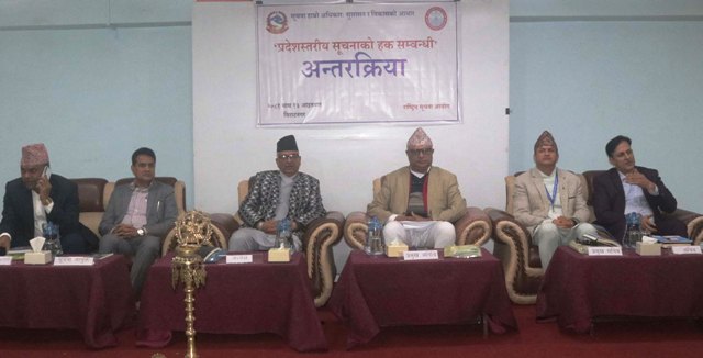 प्रमुख सूचना आयुक्त डा सुरेशप्रसाद आचार्यले सूचना अधिकारीले जिम्मेवारी पूर्वक कानुनले तोके अनुसार सूचना दिनु पर्नेमा जोड दिनुभयो । उहाँले सूचना अधिकारीले सूचना दिन आलटालमा गरेमा दण्डती हुने भनेको अरु नभएर अधिकारी नै हुने छन् भन्नु भयो । प्रदेशमा प्रमुख सचिव केदारनाथ शर्माले सूचना माग्ने र दिनेको नियत सफा हुनुपर्छ भन्दै प्रत्येक तीन÷तीन महिनामा गरेका कामहरुको सूचना वेभसाइटलमा प्रकाशन गरेमा सहज हुने विचार राख्नु भयो ।