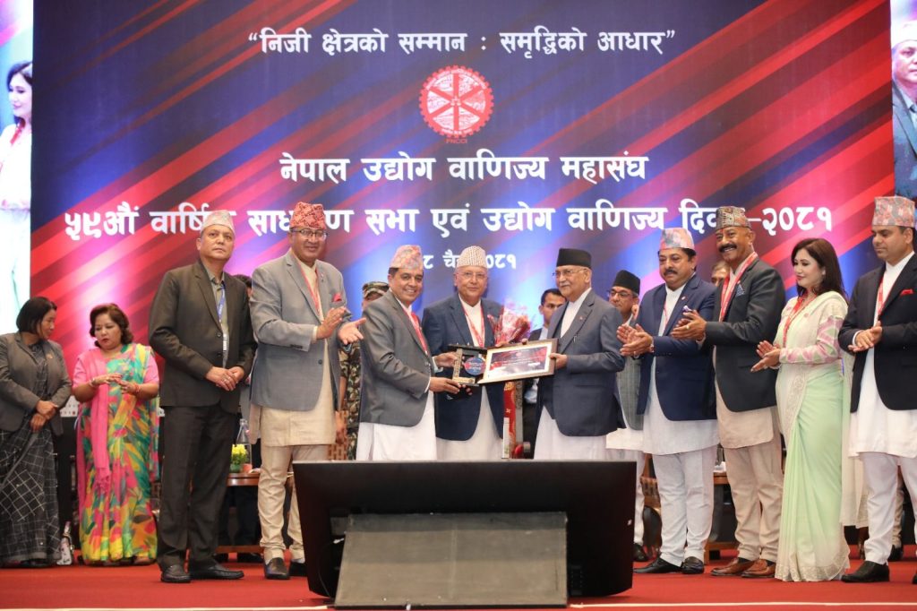 नेपाल उद्योग बाणिज्य महासंघको ५९ औ वार्षिक साधारण सभा एवं उद्योग वाणिज्य दिवस २०८१ का अवसरमा काठमाण्डौंमा आयोजित कार्यक्रममा नेपाल उद्योग वाणिज्य महासंघ कोशीलाई उत्कृष्ट प्रदेश शाखाको रुपमा सम्मान गरिएको महासंघ कोशी प्रदेशका कार्यकारी निर्देशक राधारमण भण्डारी (श्याम) ले जानकारी दिनुभयो ।
