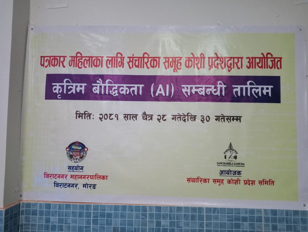 विराटनगर २८ चैत । संचारिका समूह कोशी प्रदेशको आयोजनामा तीन दिने “कृत्रिम बौद्धिकता एआई सम्बन्धी तालिमको सुरु भएको छ।