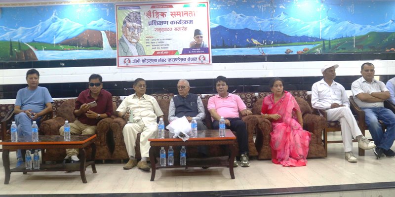 विराटनगर १३ जेठ । नेपाली कांग्रेसका नेता डा शेखर कोइरालाले मुलुकका हरेक क्षेत्रमा लैङ्गिक समानता कायम हुनु जरुरी रहेको बताउनु भएको छ । जिपी कोइराला लेबर फाउण्डेशन नेपालद्वारा आज विराटनगरमा आयोजित ‘लैङ्गिक समानता’ विषयक प्रशिक्षण कार्यक्रमको उद्घाटन गर्दै उहाँले राजनीतिक दलहरुले लैङ्गिक समानतालाई व्यवहारमा उतार्न आफ्नो क्षेत्रबाट कार्य गर्नुपर्नेमा जोड दिनु भयो । नेता डा […]