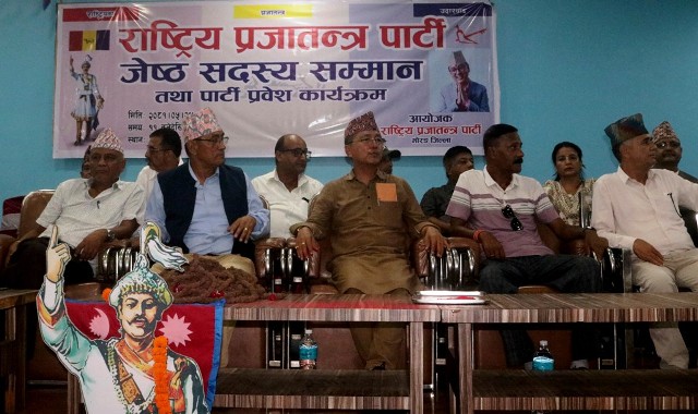 विराटनगर २४ भदौ । राष्ट्रिय प्रजातन्त्र पार्टी मोरङले आज विराटनगरमा जेष्ठ सदस्यहरुलाई सम्मान एवं पार्टी प्रवेशलाई स्वागत कार्यक्रमको आयोजना गरेको छ । पार्टीका केन्द्रीय अध्यक्ष राजेन्द्रप्रसाद लिङ्गदेनले ८० बर्षभन्दा माथिका जेष्ठ सदस्यहरुलाई सम्मान गर्दै समाजमा सामाजिक सदभाव कायम राख्न एवं जनताको भरोसा योग्य पार्टी बनाउन उहाँहरुको ठूलो योगदान रहेको बताउनु भयो । उहाँले भन्नु भयो,‘देश […]