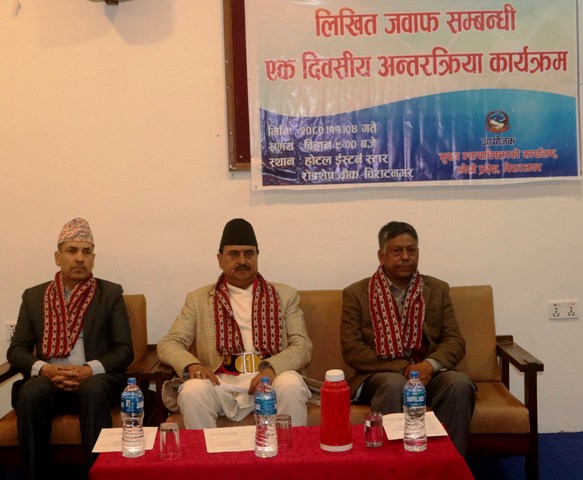 विराटनगर ४ फागुन । प्रदेश सरकार पक्षको मुद्दाको प्रतिरक्षा गर्न अदालतमा हुने लिखित जवाफ तथ्य र सत्यका आधारमा हुनुपर्ने सहभागीहरुले बताएका छन् । कोशी प्रदेश मुख्य न्यायाधिवक्ताको कार्यालय विराटनगरद्वारा आज आयोजित लिखित जवाफ सम्वन्धी एक दिने अन्तरक्रियामा सहभागीहरुले प्रदेश सरकार अन्तर्गतका कार्यालय हरेक कामको जवाफदेहीता हुनु पर्ने उहाँहरुले सुझाव दिएका छन् । उच्च अदालत विराटनगरका […]