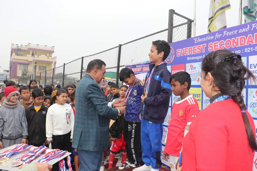 विराटनगर १२ माघ । विराटनगर–५ स्थित एभरेष्ट माध्यामिक विद्यालयमा जारी एभरेष्ट स्पोट्र्स मिट अन्तर्गत आज कक्षा २ देखि ६ सम्मका स्पर्धा सम्पन्न भएका छन । बिहीवार सम्पन्न कक्षा २ को ५० मिटर दौडमा अनुज चौधरी र यूक्ती चौधरी प्रथम हुँदा दीवांश मेहता र आस्मा चौधरी दित्तिय हुनुभएको छ । यस्तै कौशल यादव र दिक्षिता सिंह […]