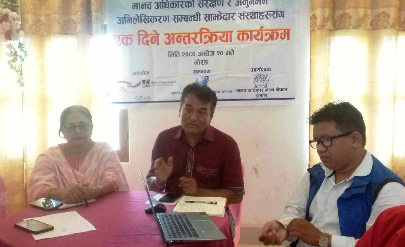विराटनगर २० असोज । मोरङको मानव अधिकारको अवस्थाबारे विराटनगरमा आज सरोकारवालाहरुवीच छलफल भएको छ । जीआईजेड–जेडएफडिको सहयोग तथा साझा सवालका लागि साझा मञ्च कोकनको समन्वयमा मानव अधिकार मञ्च नेपाल, इलामले आयोजना गरेको कार्यक्रमका सहभागिहरुले शिक्षा, स्वास्थ्यको क्षेत्रमा समस्या देखिएको बताएका थिए । सरोकारवाहरुले महिला हिंसा, बालविवाहका घटनाहरु, आपराधिक घटनाहरु बढ्दै गएको बताएका थिए । छलफलका […]
