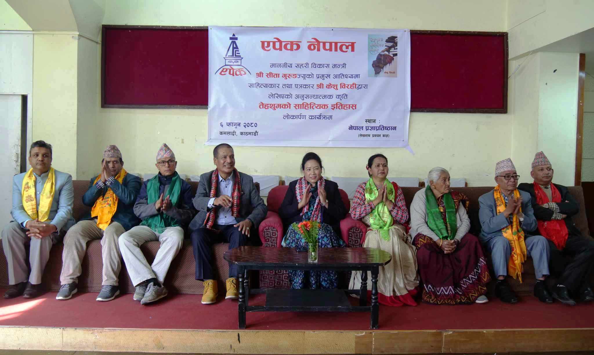 काठमाडौँ ६ फागुन । पत्रकार तथा साहित्यकार केशु विरहीको अनुसन्धानात्मक कृति तेह्रथुमको साहित्यिक इतिहासको लोकार्पण कार्य सम्पन्न भएको छ । एपेक नेपालको आयोजनामा, नेपाल प्रज्ञा–प्रतिष्ठान, कमलादि, काठमाडौमा सम्पन्न कार्यक्रममा विरहीको पछिल्लो नवौँ कृतिको लोकार्पण गरिएको हो । लोकार्पणपछि कार्यक्रममा बोल्दै प्रमुख अतिथि सहरी विकास मन्त्री सीता गुरुङले साहित्यिक कृति त्यसमा पनि अनुसन्धानात्मक लेख्न निकै कठिन […]