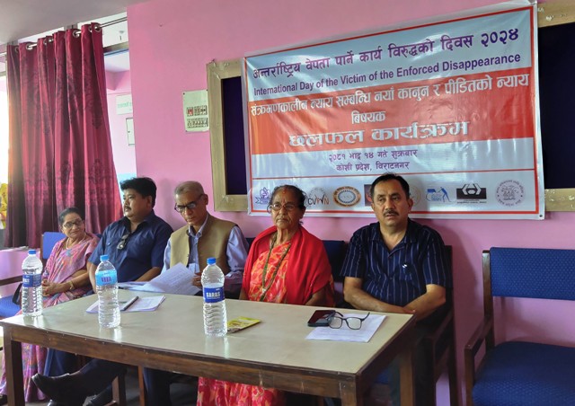 विराटनगर १४ भदौ । राष्ट्रपति रामचन्द्र पौडेलले विहिबार प्रमाणीकरण गर्नु भएको संक्रमणकालीन न्यायसम्बन्धी विधेयकप्रति पीडित परिवारले संशय व्यक्त गरेका छन् । इन्सेक कोशी प्रदेश कार्यालय, विराटनगरसहित विभिन्न सङ्घसंस्थाको आयोजनामा १४ औँ अन्तर्राष्ट्रिय बेपत्ता पार्नेविरूद्धको दिवसको अवसरमा आज विराटनगरमा आयोजित कार्यक्रममा सो संशय व्यक्त गरिएको हो । वेपत्ता परिवार समाज नेपालका केन्द्रीय अध्यक्ष रूपेश साहले हालै […]