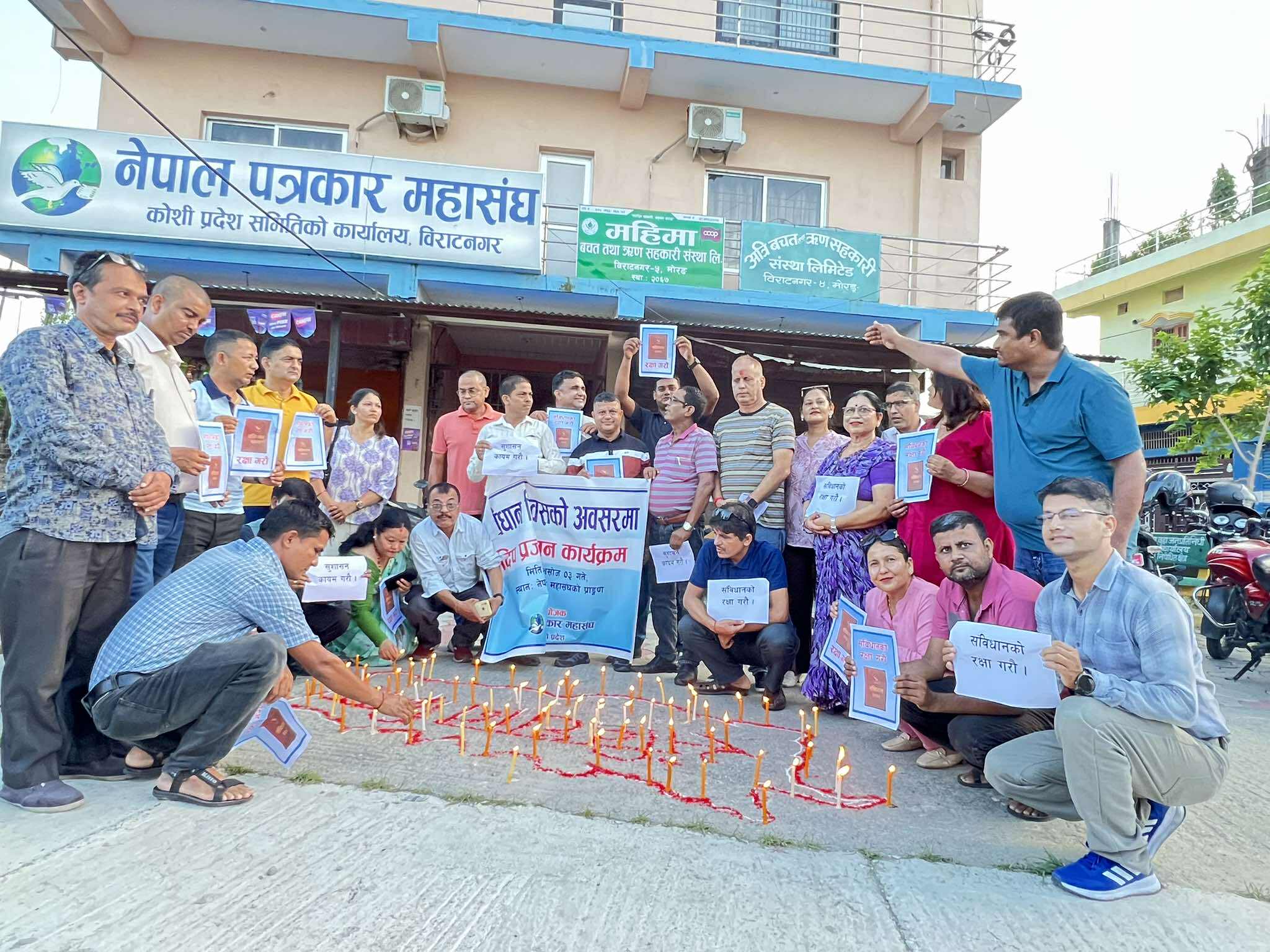 विराटनगर ३ असोज । संविधान दिवस २०८२ को अवसरमा नेपाल पत्रकार महासंघ कोशी प्रदेशले दीपप्रज्वलन कार्यक्रम गरेको छ । महासंघ कोशी प्रदेशको प्राङ्गणमा आयोजना गरिएको दीप प्रज्वलन कार्यक्रममा केन्द्रीय सदस्य कमल रिमाल, प्रदेश महासंघका पदाधिकारीहरु, मोरङ महासंघका पदाधिकारी तथा सदस्यहरु, प्रेस युनियन, प्रेस चौतारी, प्रेस सेन्टर, समाजवादी प्रेस संगठन, प्रेस मञ्चका प्रदेश तथा जिल्ला संगठनका […]