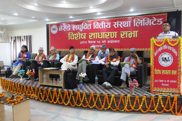 विराटनगर १० वैशाख । नेरुडे लघुवित्त वित्तिय संस्था लिमिटेड र मिर्मिरे लघुवित्त वित्तीय संस्था लिमिटेड एकापसमा गाभिएका छन् । दुवै वित्तिय संस्थाले गाभिएर नेरुडे मिर्मिरे लघुवित्त वित्तीय संस्था लिमिटेडबाट बैंकिङ कारोबार गर्ने भएका छन् । नेरुडे लघुवित्त वित्तीय संस्था लिमिटेडले विराटनगरमा आज विशेष साधारण सभा गरि मर्जर सम्बन्धिको प्रस्ताव पारित गरेको हो । डा.भेषप्रसाद धमलाको […]