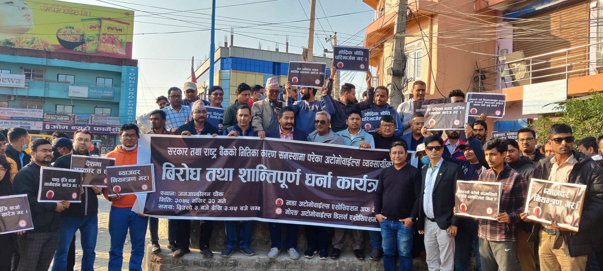 विराटनगर, २२ मंसिर । अटोमोवाइल्स व्यवसायीहरुले सवारी साधनहरुको आयात खुलेपनि राष्ट्र बैंकको नीतिका कारण गाडी बिक्री गर्ने वातावरण नभएको भन्दै आन्दोलनमा उत्रिएका छन् । मोरङ अटोमोबाइल्स डिलर्स एसोसिएसन विराटनगर र नाडा अटोमोवाईल्स एसोसिएशन नेपालले विराटनगरस्थित महेन्द्र चौकमा आज धर्ना दिएका हुन् । उनीहरुले सरकारसँग व्यवसायीमैत्री नीति ल्याउन पनि माग गरेका छन् । अटो व्यवसायीहरुले अगाडि […]