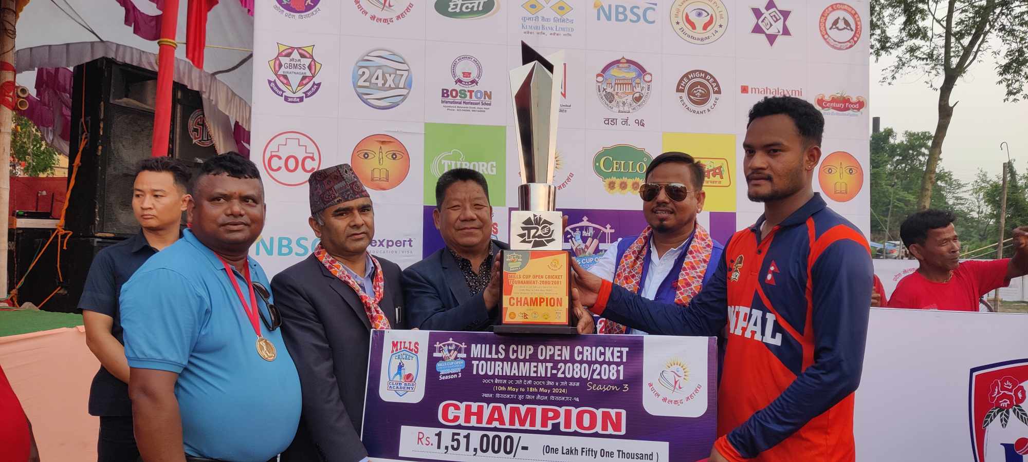 विराटनगर ९ जेठ । तेस्रो संस्करणको मिल्स कप टि – २० क्रिकेट प्रतियोगिताको उपाधि विराटनगरको वाइआरसिसी क्रिकेट क्लबले जितेको छ । विराटनगर जुटमिलको खेलमैदानमा मंगलबार सम्पन्न भएको फाइनल खेलमा विराटनगरको होराइजन क्रिकेट क्बललाई २०० रनको फराकिलो अन्तरले हराउँदै वाइआरसिसीले उपाधि जितेको हो । जितसँगै वाइआरसीसीले १ लाख ५१ हजार र ट्रफि हात पारेको छ । […]