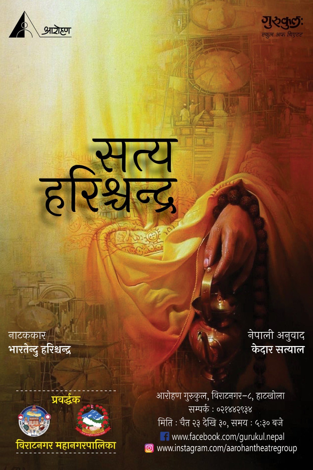 विराटनगर १७ चैत । आरोहण गुरुकुल विराटनगरमा ‘सत्य हरिश्चन्द्र’ नाटक मञ्चन हुने भएको छ । सुशीला कोइराला नाटकघरमा गुरुकुलले चैत २३ देखि ३० गतेसम्म नाटक मञ्चन गर्न लागेको हो । आधुनिक हिन्दी साहित्यका पिता मानिने भारतेन्दु हरिश्चन्द्रले लेखेको नाटकलाईकेदार सत्यालले नेपालीमाभावानुवाद गरेका हुन् । सन् १८७६ मा भारतमा पहिलो पटक प्रकाशित भएको यो नाटकमा सूर्यवंशी […]