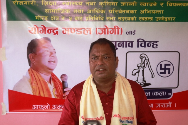 विराटनगर २८ असोज । मोरङ क्षेत्र नं. ५ बाट प्रतिनिधिसभा सदस्यमा स्वतन्त्र उमेदवारी दिनु भएको योगेन्द्र मण्डल ‘जोगी’ले शिक्षा, स्वास्थ्य, कृषि तथा युवा स्वरोजगार निर्वाचनको आफनो मुल एजेन्डा रहेको वताउनु भएको छ । निर्वाचन क्षेत्र कटहरीमा आज पत्रकार सम्मेलन गर्दै मण्डलले जनतालाई केन्द्रविन्दुमा राखेर आफुले स्वतन्त्र उमेदवारी दिएको वताउनुभयो । लामो समयदेखी क्षेत्र नं. ५ […]