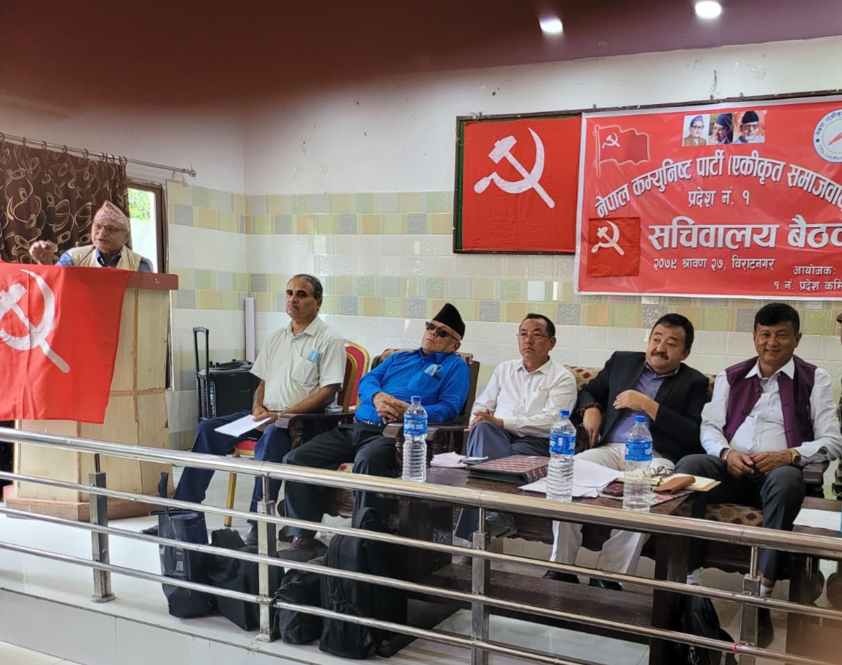 विराटनगर, २७ साउन । नेपाल कम्युनिष्ट पार्टी(एकीकृत समाजवादी) १ नम्बर प्रदेश कमिटी आगामी भदौ महिना संगठन विस्तार र कमिटी निर्माणको काममा केन्द्रित हुने भएको छ । प्रदेश नं. १ कमिटीको आज बसेको सचिवालय बैठकले भदौमा प्रदेशका सबै वडा तहमा कमिटीहरू गठन गरिसक्ने निर्णय गरेको छ । सचिवालय बैठकमा प्रदेश नंं. १ पार्टीका १४ वटै जिल्ला […]