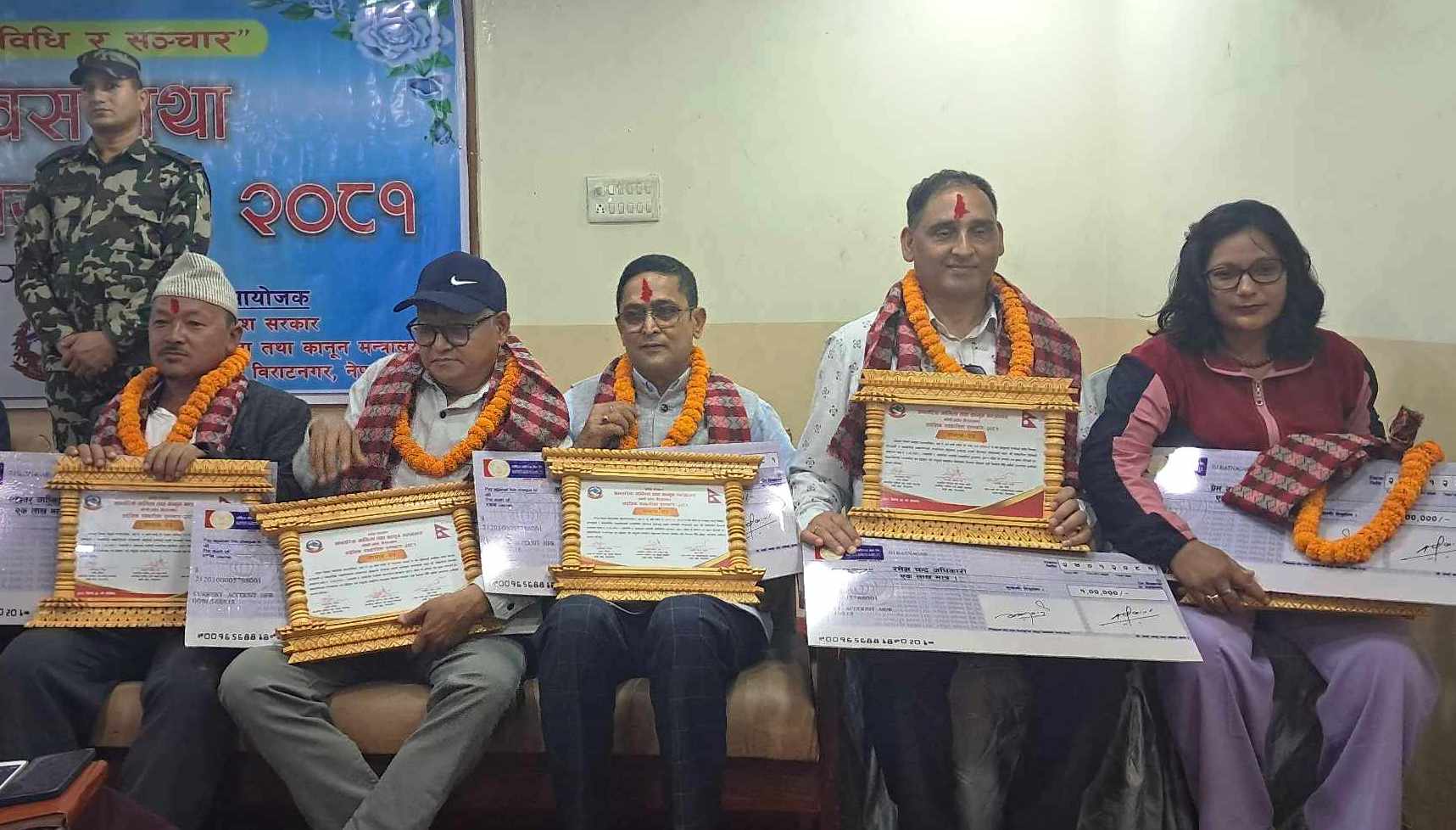 विराटनगर २४ वैशाख । कोशी प्रदेश सरकारले पत्रकारिता दिवसको अवसरमा आज पाँच जना अग्रज पत्रकारहरुलाई सम्मान गरेको छ । आन्तरिक मामिला तथा कानुन मन्त्रालयद्वारा आज विराटनगरमा आयोजित पत्रकारिता दिवस तथा पत्रकार सम्मान कार्यक्रममा अनवरत रुपमा २५ वर्ष भन्दा वढी पत्रकारिता गरेका विभिन्न जिल्लाका पाँच जना सञ्चारकर्मीहरुलाई नगद एक लाख सहित सम्मान एवं पुरस्कृत गरिएको छ […]