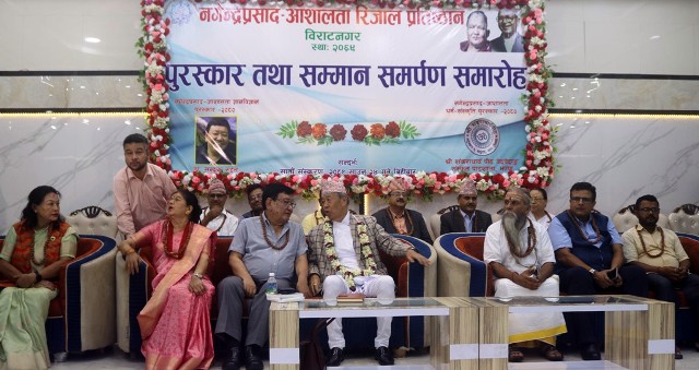 विराटनगर २४ साउन । प्रसिद्ध आँखा चिकित्सक डा सन्दूक रुइत र सनातन धर्म शंकरराचार्य पीठ वेद वेदवेदाङ्ग संस्कृत पाठशाला झापालाई आज विराटनगरमा एक समारोहवीच पुरस्कारबाट सम्मान गरिएको छ । पूर्वप्रधानमन्त्री नगेन्द्र प्रसाद – आशालता रिजाल प्रतिष्ठान विराटनगरद्वारा स्थापित रु एक लाख राशिको ज्ञान विज्ञान पुरस्कार डा रुइतलाई र रु एक लाख राशिको धर्म संस्कृति पुरस्कारबाट […]