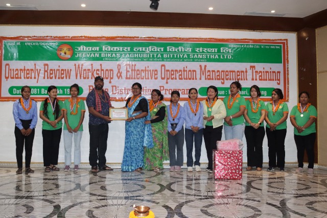 विराटनगर २३ वैशाख । जीवन विकास लघुवित्त वित्तीय संस्थाले उत्कृष्ट कर्मचारी तथा शाखालाई पुरस्कृत गरेको छ । आर्थिक वर्ष २०७९–८० मा उत्कृष्ट कार्य गरेका कर्मचारी र शाखा कार्यालयलाई पुरस्कृत गरेको हो । जीवन विकासले उत्कृष्ट जिल्ला प्रमुखको रुपमा मैयाँ राई, शिवचरण दास र मनोजकुमार मण्डललाई पुरस्कृत गरेको हो । उत्कृष्ट शाखा प्रमुख घोषित भएका रिता […]