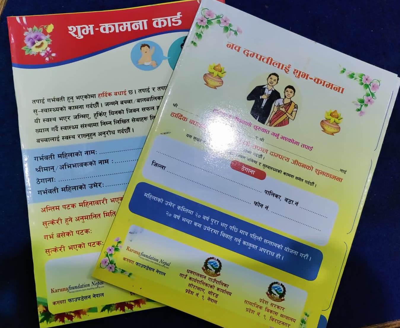 विराटनगर ५ जेठ । मोरङको धनपालथानमा कसैको विवाह भए गाउँपालिकाको स्वास्थ्यको टोली शुभकामना कार्ड लिएर घर पुग्छ । स्वास्थ्यको टोलीले दाम्पत्य जीवनको शुभकामना मात्रै दिदैन । विवाह पछि गर्नुपर्ने आवस्यक कार्य तथा तयारीका बारेमा पनि जानकारी गराउने गरेको छ । विवाह पछि गर्नुपर्ने कार्यहरु विवाह दर्ता, सन्तान जन्माउनका लागि उपयुक्त समयको छनौट, परिवार योजना, जन्मजात […]
