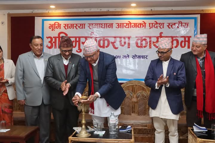 विराटनगर ५ माघ । कोशी प्रदेशका मुख्यमन्त्री हिक्मतकुमार कार्कीले भूमि सम्बन्धि समस्या समाधान नगरे मुलुकको विकराल समस्या आइपर्ने बताउनुभएको छ । आज विराटनगरमा भूमि समस्या समाधान आयोगको प्रदेशस्तरीय अभिमुखिकरण कार्यक्रमलाई सम्बोधन गर्दै मुख्यमन्त्री कार्कीले तीन वर्षभित्र भूमिसम्बन्धि सबै समस्या समाधान गर्ने गरी बनाएको भूमि समस्या समाधान आयोगले तीन वर्षभित्रमा सबै कार्यभार पुरा गर्नुपर्ने बताउनुभयो । […]
