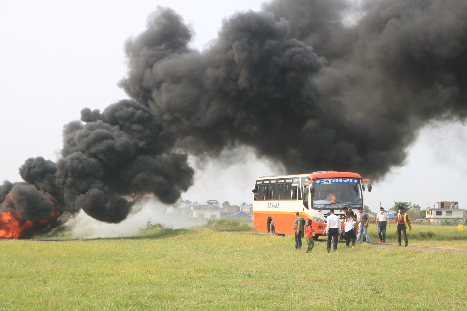 विराटनगर, १८ वैशाख । जहाज दुर्घटना भएका बेला गरिने उद्धारको अभ्यास विराटनगर विमानस्थलमा आज गरिएको छ । जहाज दुर्घटना भएको देखाएर गरिएको अभ्यासले घटनाका बेला अपनाउनुपर्ने सबै उपाय र गर्नुपर्ने उद्धार लगायतका सबै कामको यथार्थ चित्रण गरेको थियो । विराटनगरबाट काठमाडौंका लागि ६८ यात्रु बोकेर उडेको एक्सरसाइज एयर–००४ कल साइन भएको जहाज चरासँग ठोक्किएपछि पुनः […]