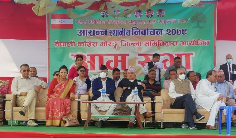 विराटनगर, २१ वैशाख । नेपाली कांग्रेसका सभापति शेरबहादुर देउवाले नेपाली कांग्रेस आफूले खाएपनि अरुलाई धोका नदिने गरेको बताएका छन् । नेपाली कांग्रेस मोरङले आज विराटनगरमा आयोजना गरेको चुनावी सभामा बोल्दै देउवाले योपटक कांग्रेसका युवा नेता नागेश कोइरालालाई विराटनगर महानगरपालिकाको मेयरको टिकट दिलाएर न्याय गरेको पनि बताए । “यसअघि पनि पनि नागेश मेयरको आकांक्षी थिए, त्यसपछि […]